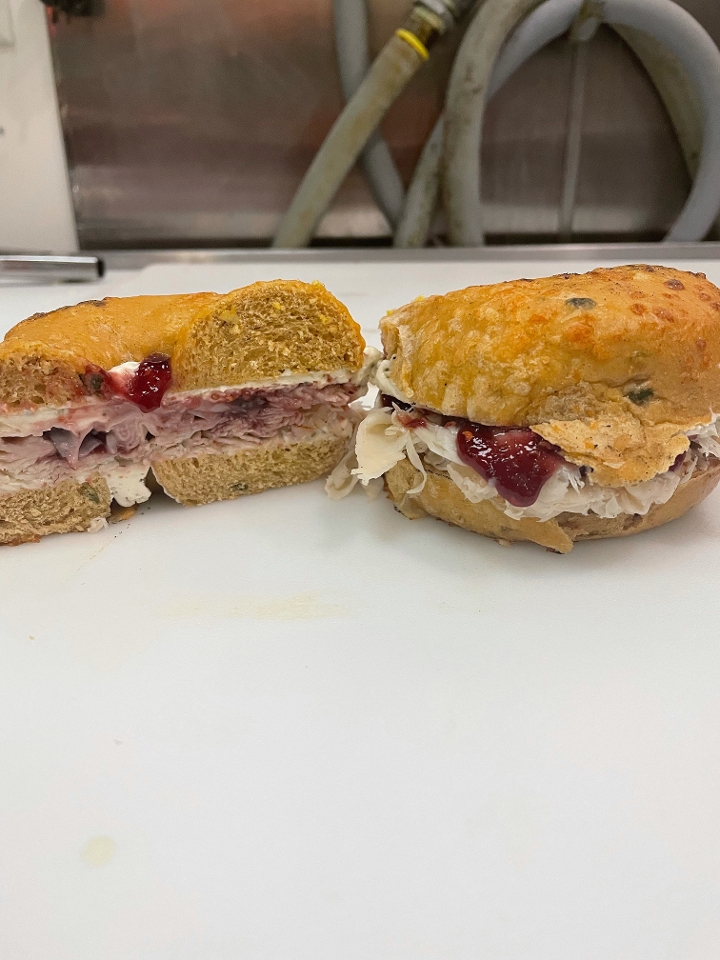 NY Bagel of your Choice with Turkey, Cheddar Cheese, Avocado and Cream Cheese!